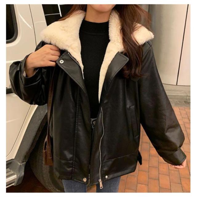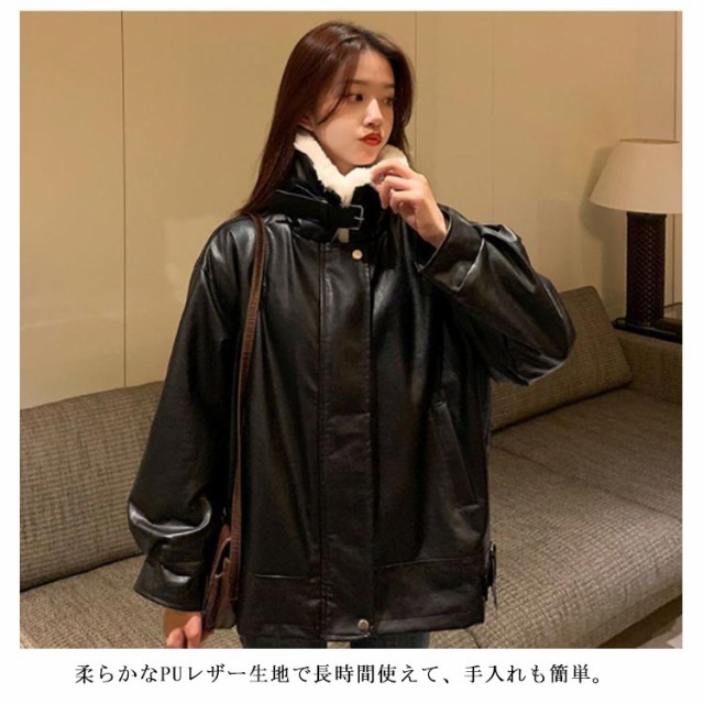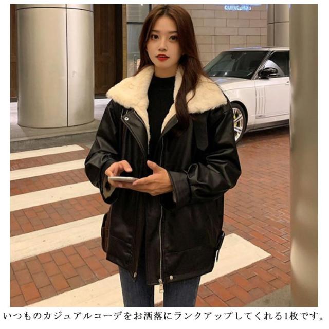 裏ボア 裏起毛 バイクジャケット 韓国ファッション 冬物 ムートン ムートンジャケット コート ライダースジャケット PUレザー アウター レザージャケット ジャケット 厚手 暖かい 防寒 革ジャケット ゆったり 体型カバー アウトドア 通勤 レディース