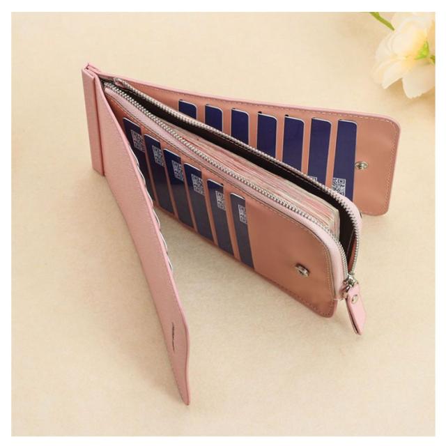 | 多くなりがちなカードをスマートに収納できるカード収納長財布。 ファスナー付きポケットが一つ付いておりますので、家の鍵や自転車の鍵などを入れて収納することができます。 カードもたっぷり26枚入り、開きタイプなので、何が入っているのか一目瞭然で、取り出しも容易です。 形がとてもスマートなので、バッグの中に入れてもかさばらずすっきり収納できます。 年齢性別を問わずにお使いいただけるのでギフトに大変おすすめです。 | |