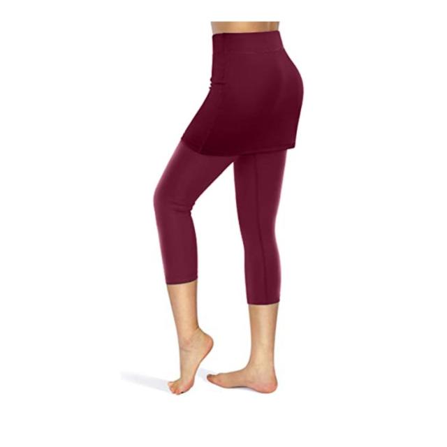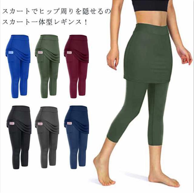 ランニング スカート付きレギンス レギンス付きスカート レディース クロップド丈 S-2XL! レギンス スポーツタイツ 7分丈 スパッツ ストレッチ ヨガウェア フィットネス 大きいサイズ ウォーキング ダンス モダール