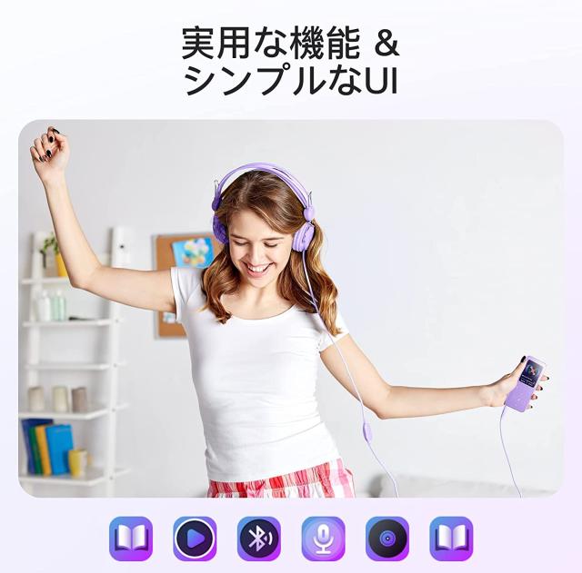 MP3プレーヤー パープル Bluetooth5.3 内蔵32GB HiFi ダイレクト録音 内蔵スピーカー FMラジオ 2.4インチ 音楽プレーヤー 最大128GBのTFカード対応 AMP-013