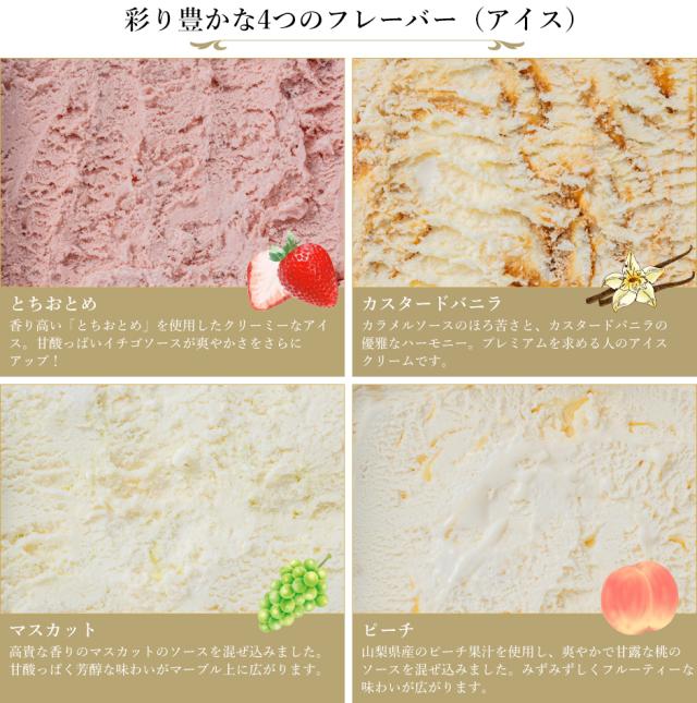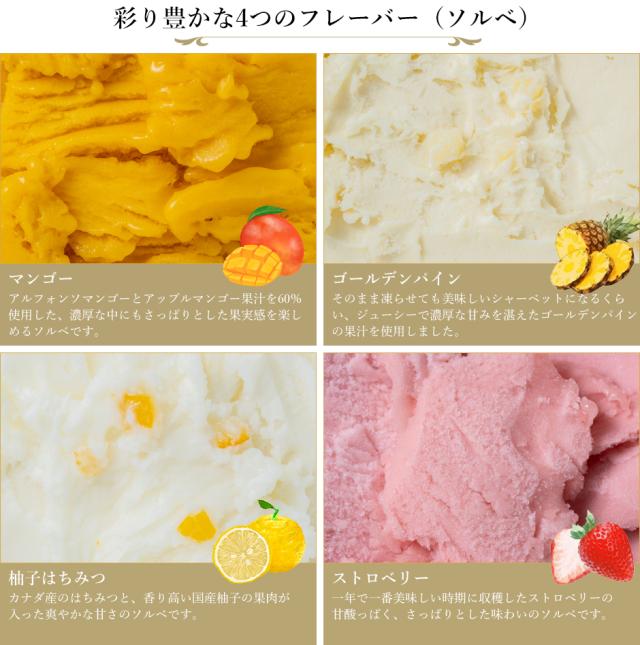 パティスリー銀座千疋屋で大人気の濃厚な味わいのアイスクリームと果汁たっぷりのソルベをセットにしました。