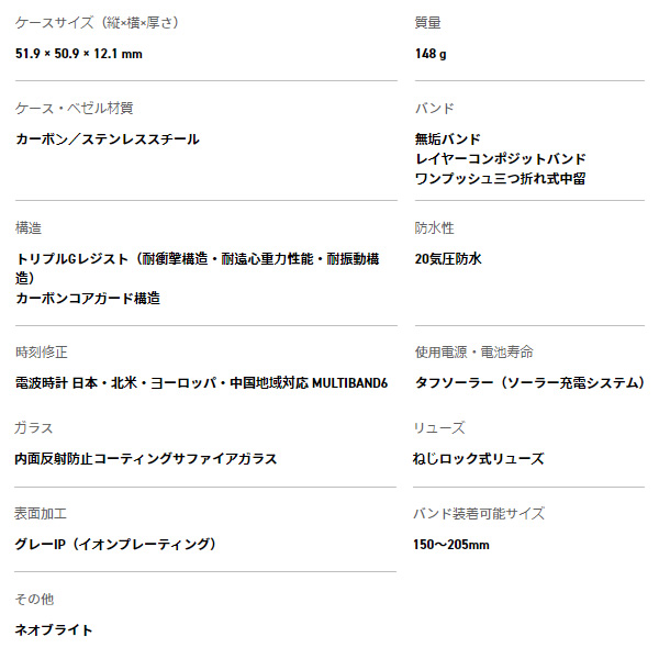 | ケース・ベゼル材質 | カーボン/ステンレススチール |