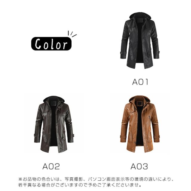 レザーコート 革ジャン メンズ レザージャケット 紳士服 アメカジ アウター 秋冬 PUレザー ライダースジャケット 開襟 フード