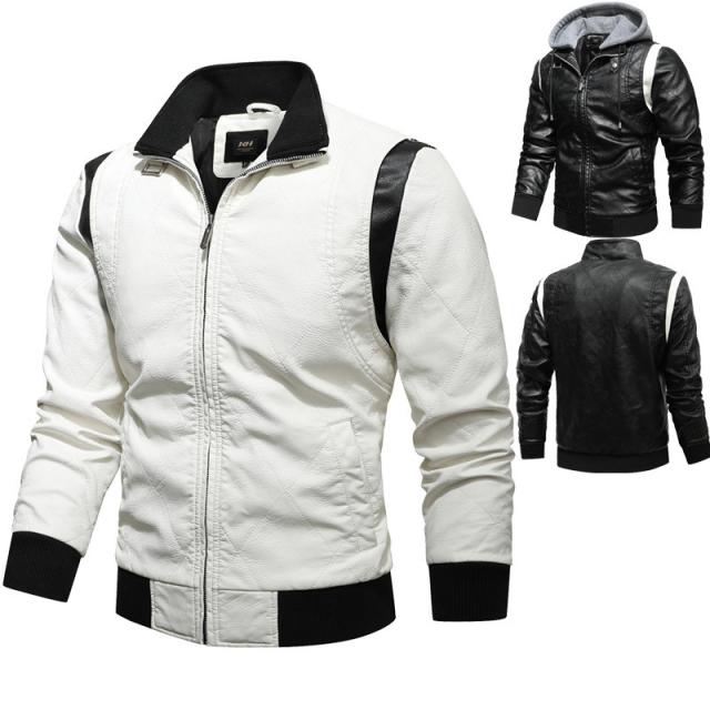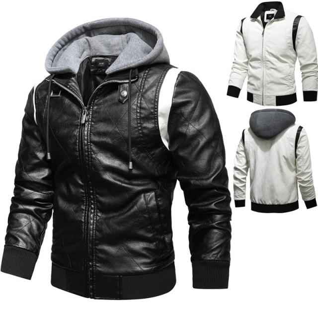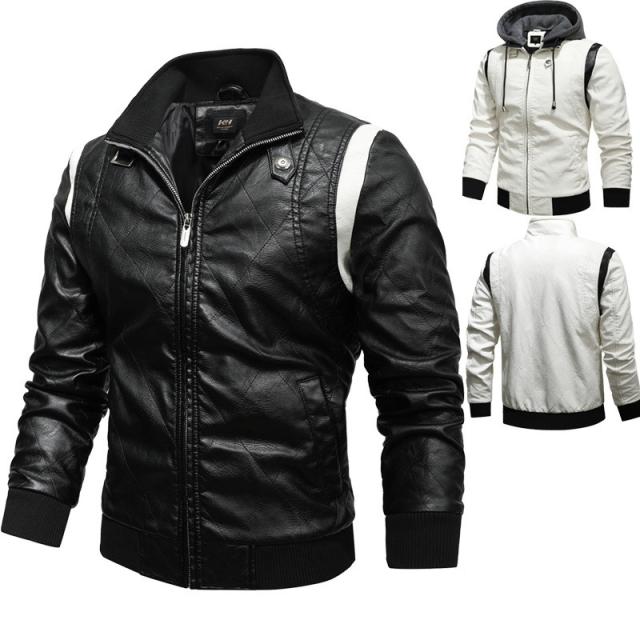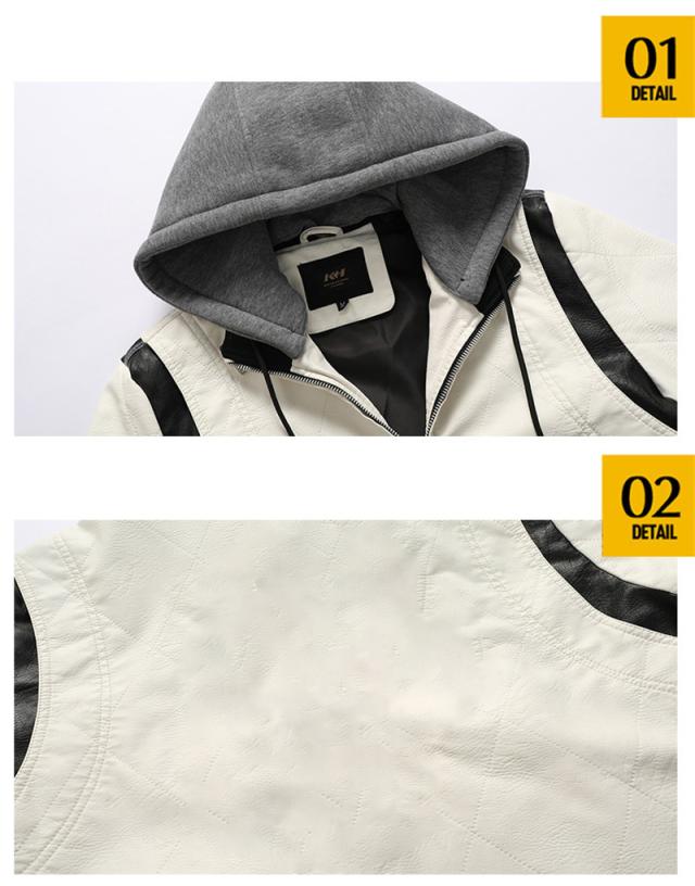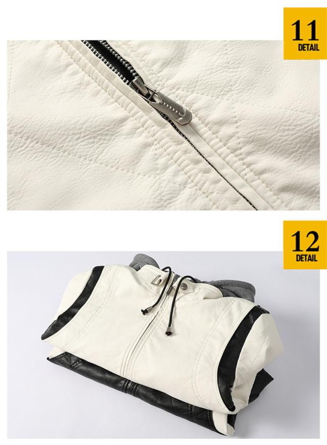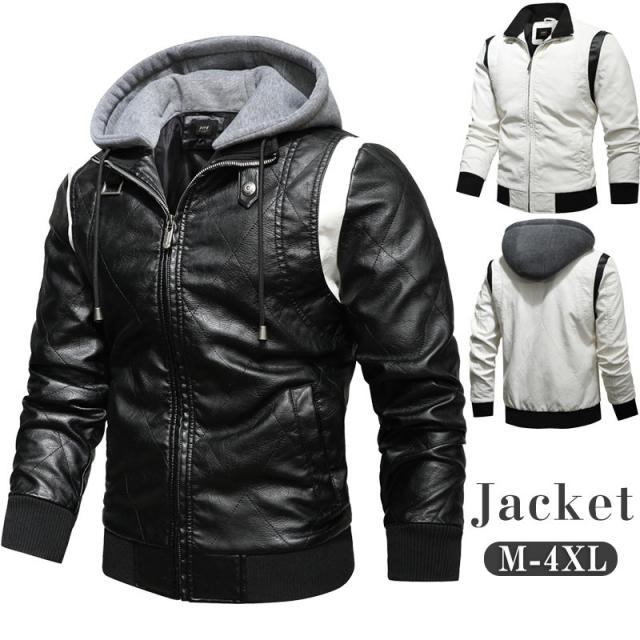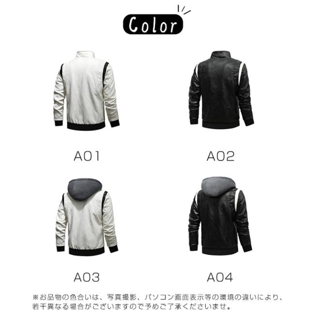 革ジャン メンズ レザージャケット レザーコート ライダースジャケット テーラード フード付き 革 開襟 刺繍 お兄系 アメカジ