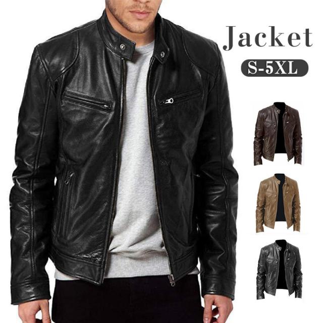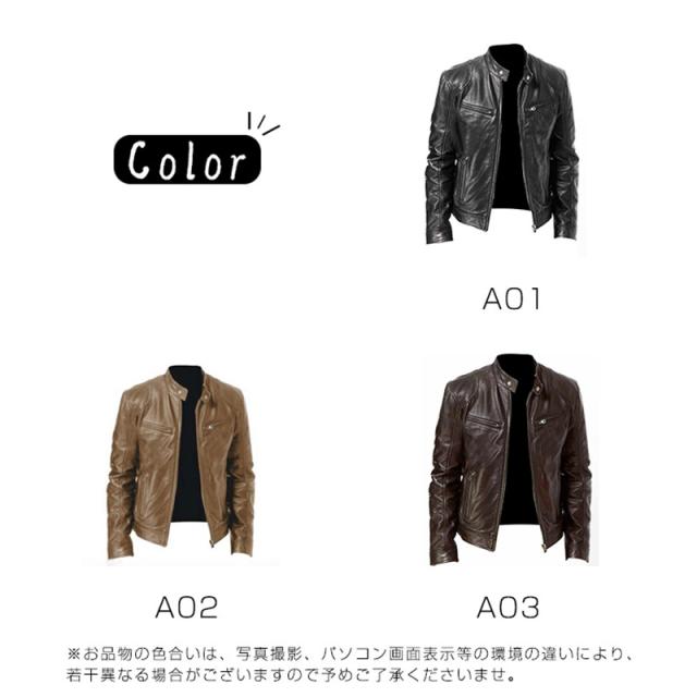 レザーコート 革ジャン メンズ レザージャケット 紳士服 アメカジ アウター 秋冬 PUレザー ライダースジャケット 開襟 防風