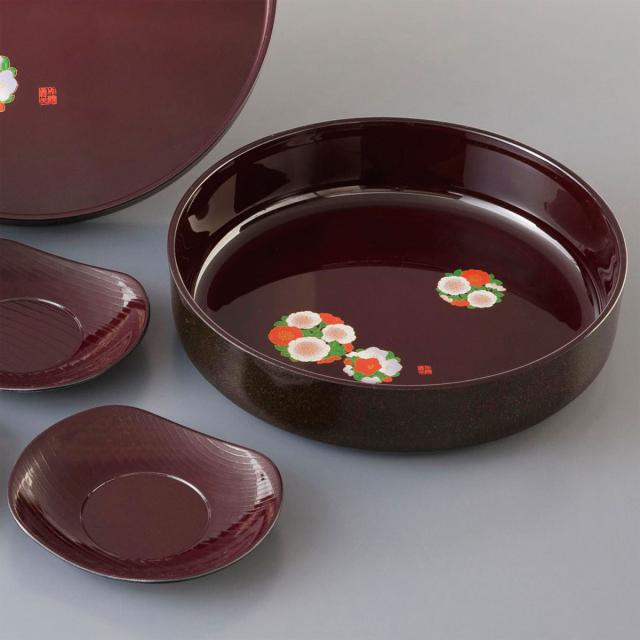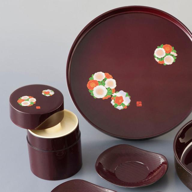 紀州塗り 茶の間Cセット 花丸春秋 成願義夫 菓子鉢 丸盆 茶托 茶筒 おしゃれ シンプル 来客 お菓子入れ トレー 和菓子 日本製 国産