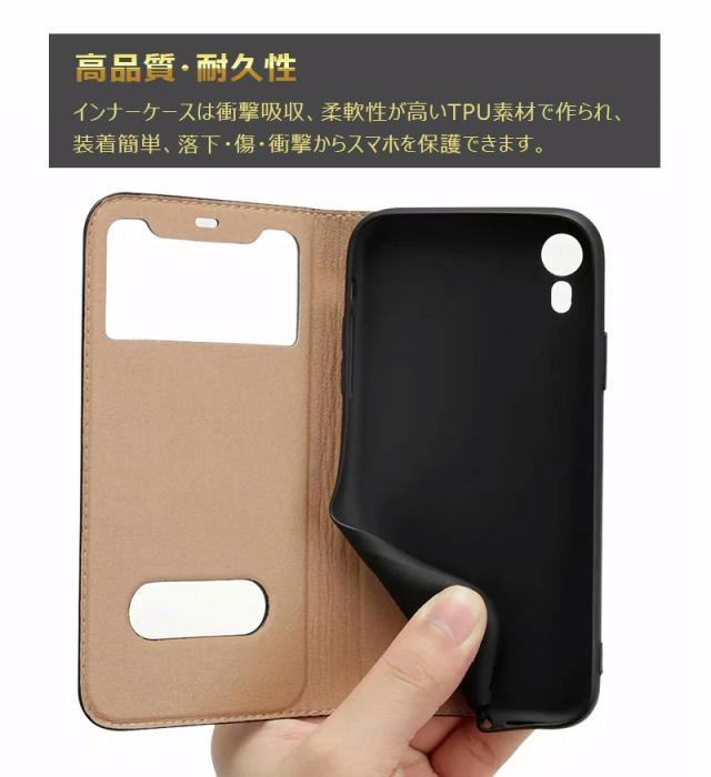 【【2つ窓付き】フラップに窓付き、ポケットから出してすぐに時間や通知や発信者の名前を確認できます。更に、閉じたままで着信応答、通話が可能です。