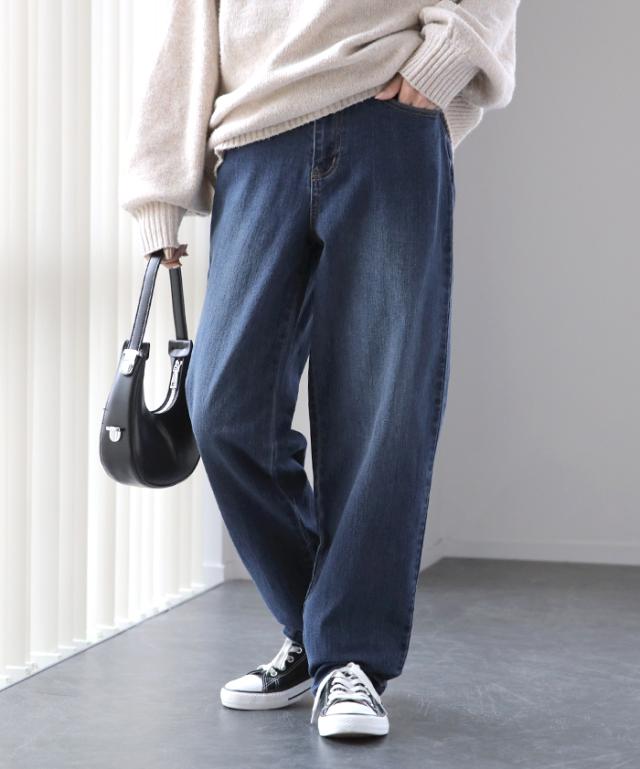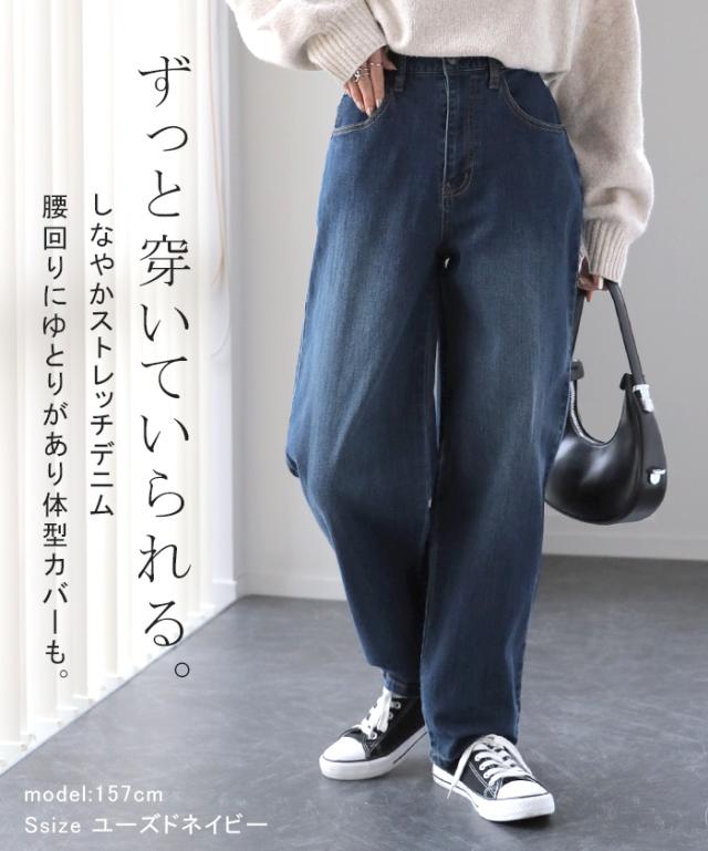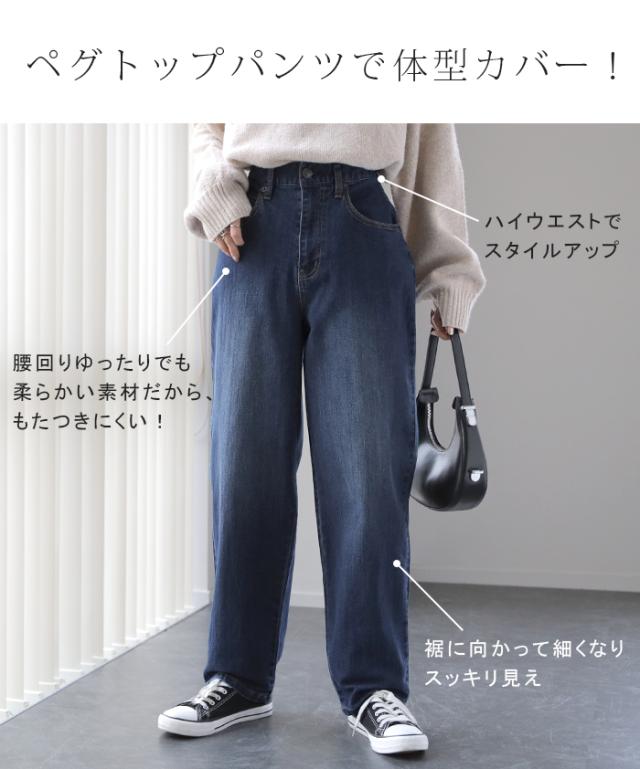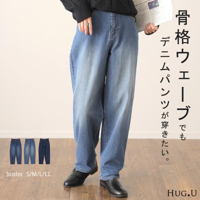 “ 腰回りゆったり ” 新感覚 デニム パンツ レディース ワイドパンツ ジーンズ ボトムス ゆったり ペグトップパンツ デニムパンツ ボーイフレンドデニム ワイド ロング ボーイズデニム ズボン ボトム 体型カバー エコ 大きいサイズ 冬 秋 HUG.U 秋新作