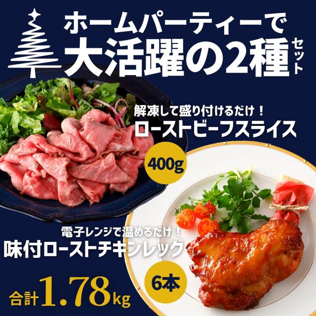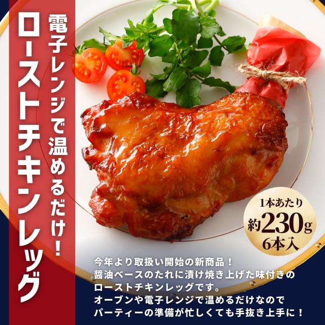 数量限定 ローストチキン レッグ 味付き 6本 1本約230g ローストビーフ スライス 400g 送料無料 電子レンジ 温めるだけ 骨付き クリスマス チキン ローストチキンレッグ 加熱後包装 鶏もも パーティー お手軽 オーブン レンジ 冷凍 冷凍食品 子ども 冬休み