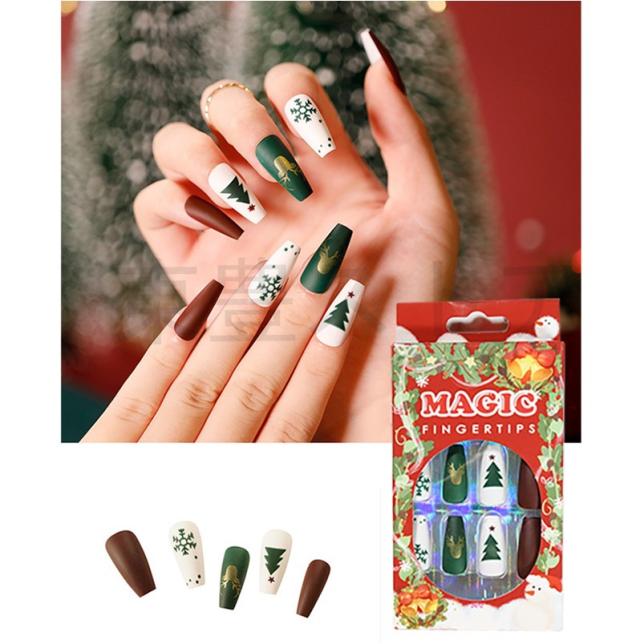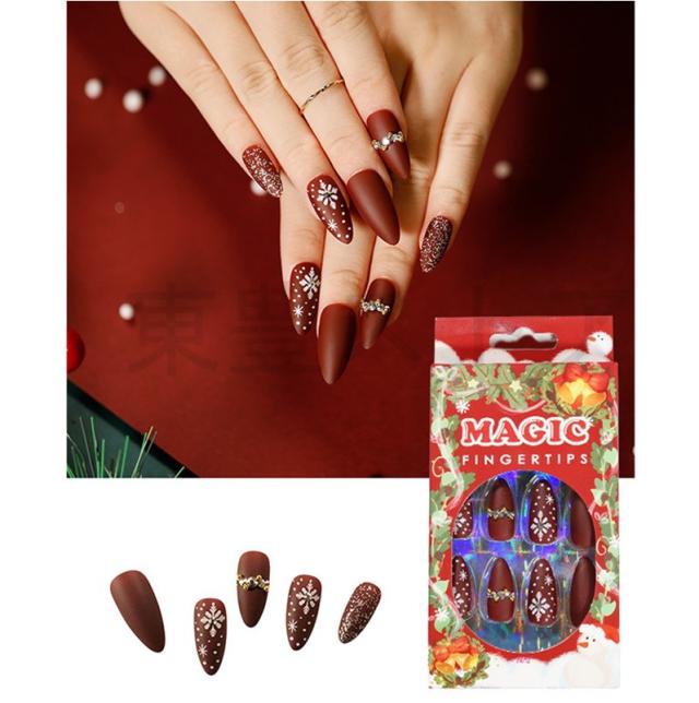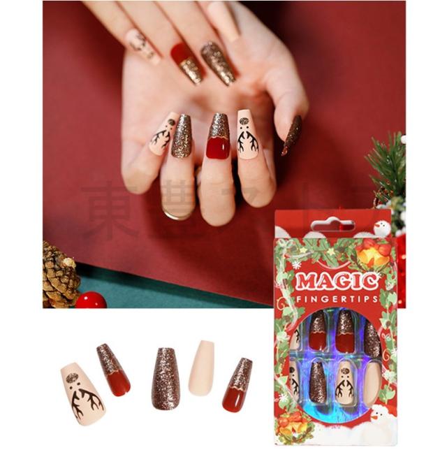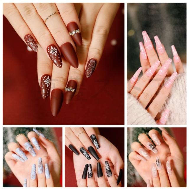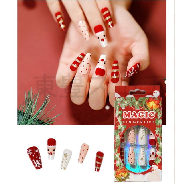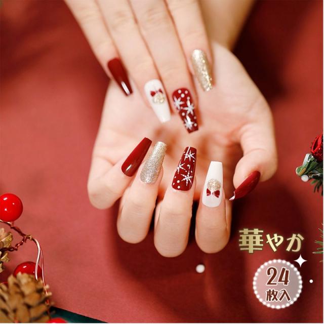 秋冬新作 ネイルチップ ファション 華やか 成人式 超簡単 のり貼るだけ クリスマス キラキラ 大人気 3D 偽爪 24枚入 結婚
