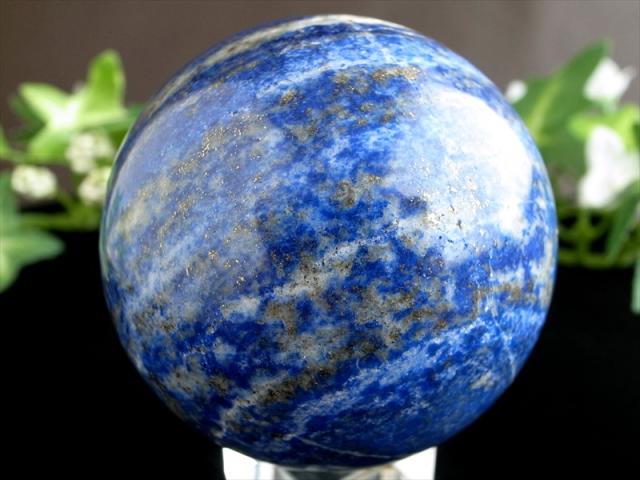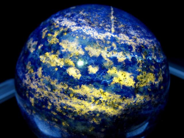 UVライトで蛍光 3A ラピスラズリ 丸玉 直径57mm 重さ290.9g つやつや光沢のある紺色 幸運を呼び寄せる ラピスラズリ 丸玉置物 一点もの アフガニスタン産 パワーストーン 天然石
