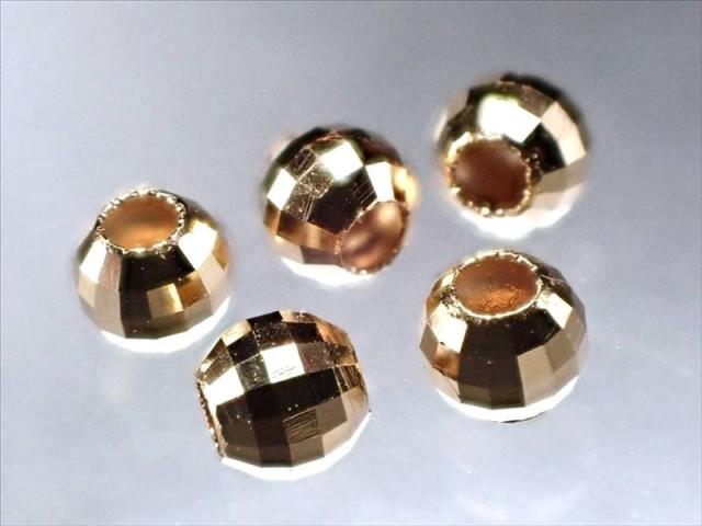 18金ゴールドカットビーズ 約3mm 穴径約0.6mm 1セット5個入り デザインブレスのサイズ調整 アクセントに 18KRND003 pa-p