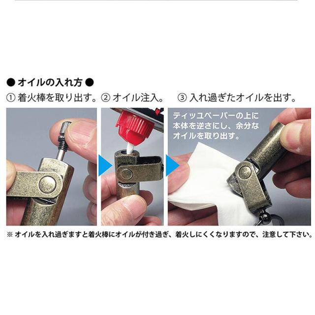 アウトドアなどで真価を発揮する、カラビナ付きで持ち運びにも大変便利なオイルマッチです。