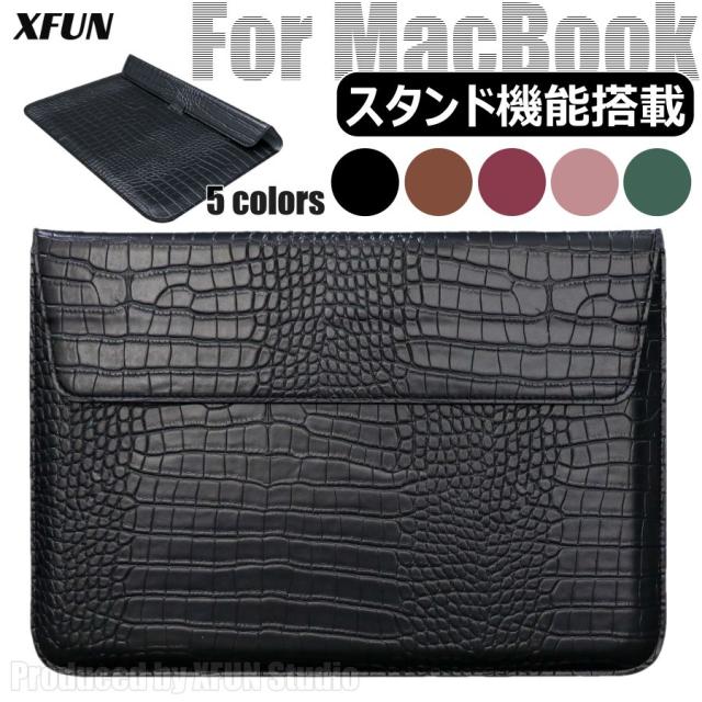 MacBook スリーブ スタンド 15インチ MacBook 14.2インチ カバー MacBook 16.2インチ スリーブ MacBook 12インチ ケース MacBook 11インチ バッグ 黒 収納 MacBook 13インチ バッグ 薄い マックブック スリーブ 鰐 軽い MacBook ハンドバッグ 鰐柄 5色