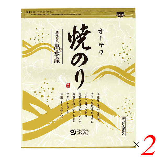 【超BIGラリー!ポイント最大+16%!】焼き海苔 焼きのり 海苔 オーサワ焼のり(鹿児島県出水産)板のり10枚 2個セット 送料無料