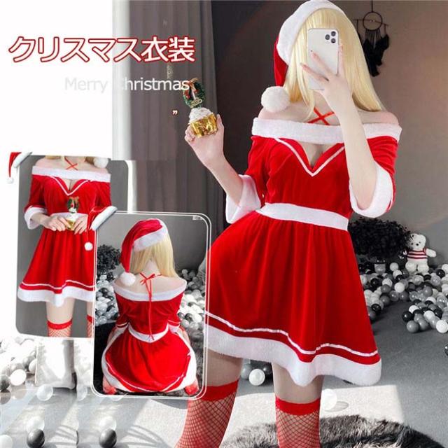 クリスマス ワンピース かわいい セクシー サンタ コスプレ 帽子+ワンピース 可愛い 学園祭 文化祭 イベント 定番サンタ 赤 コスプレ