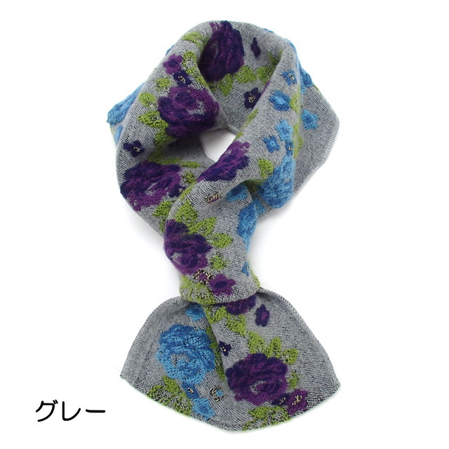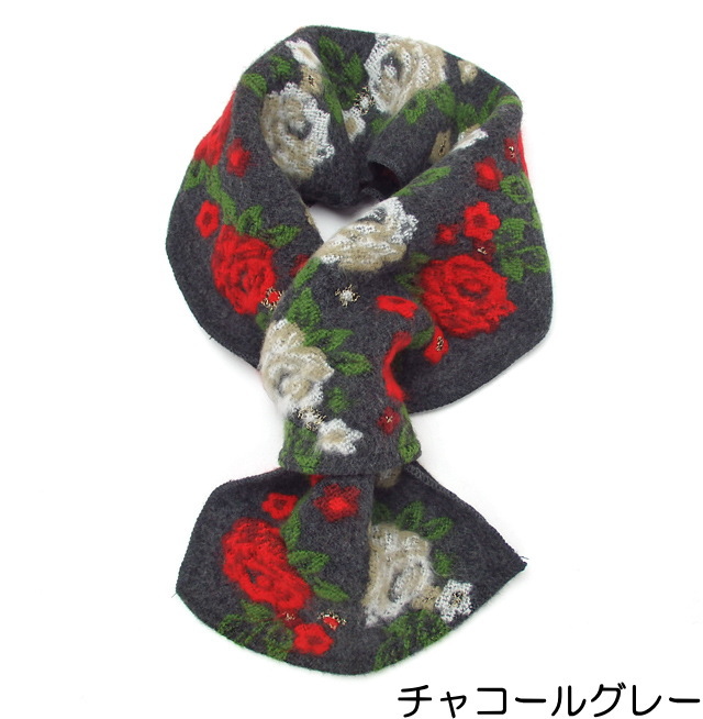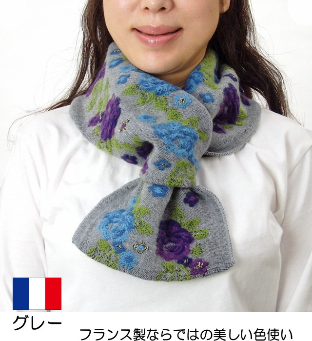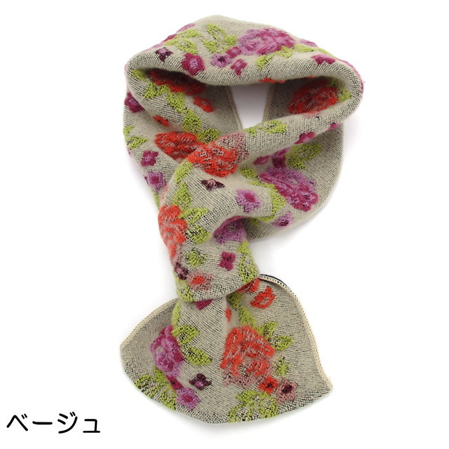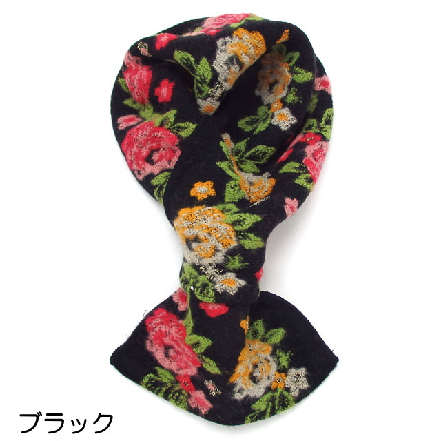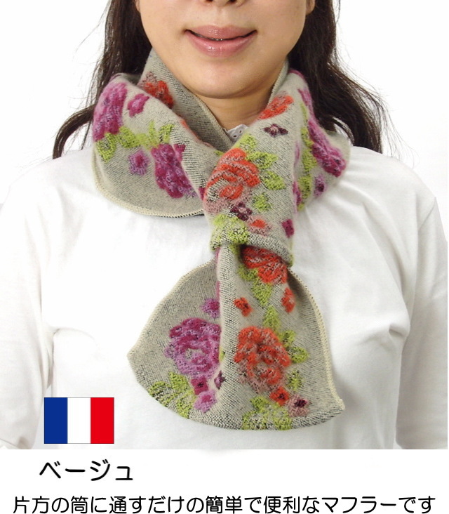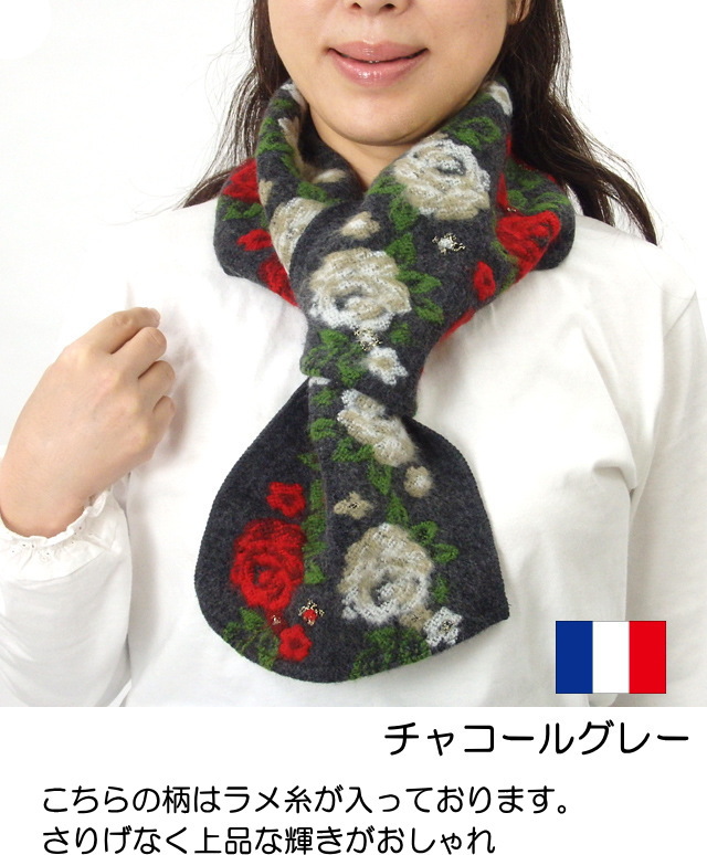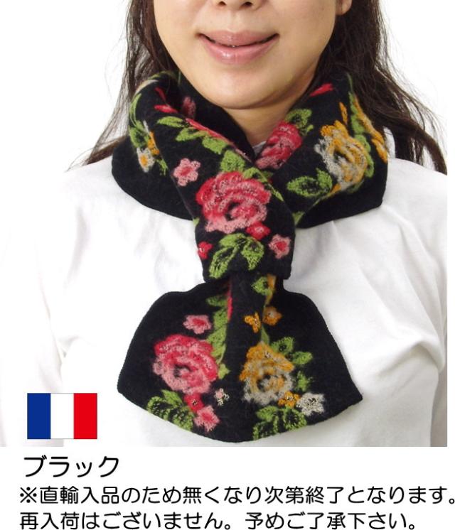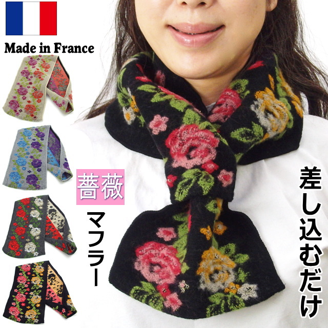 マフラー 薔薇 差し込み ワンタッチ プチ バラ柄 ダブルローズ ラシクモア フランス製 秋冬 襟巻き ミニマフラー クロスマフラー 薔薇柄 薔薇 雑貨 姫系 バラ ローズ 花柄 かわいい おしゃれ ギフト プレゼント 【 誕生日 】
