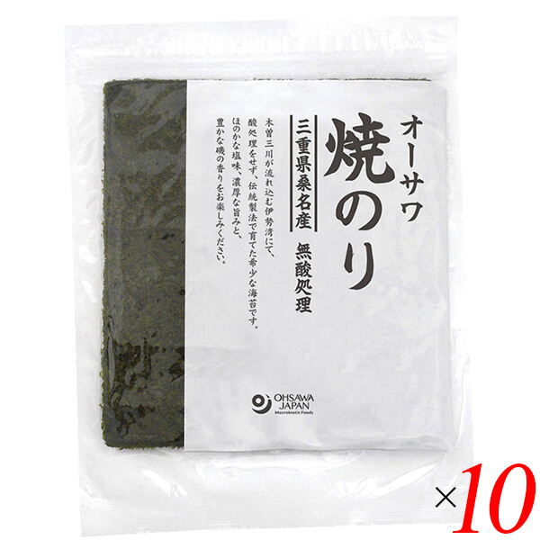 【超BIGラリー!ポイント最大+16%!】焼き海苔 焼きのり 海苔 オーサワ焼のり(三重県桑名産)板のり10枚 10個セット 送料無料