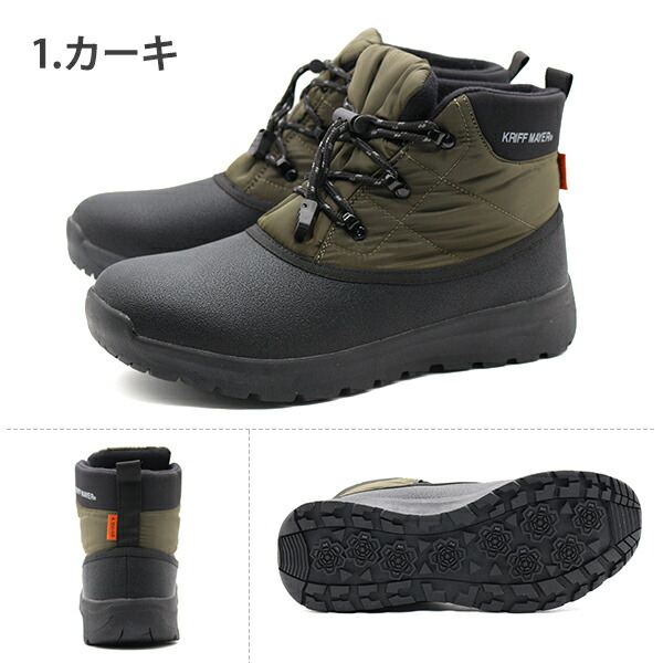 ブーツ メンズ 靴 黒 ブラック カーキ ベージュ スノーブーツ ショートブーツ ダウンブーツ 防水 防滑 滑らない 防寒 暖かい 保温材 抗菌 冬 雪 雨 厚底 シンプル かっこいい クリフメイヤー KRIFF MAYER KRI-9885