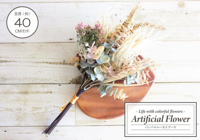 造花 フェイクフラワー パンパスユーカリブーケ 花束 アーティフィシャルフラワー 全長約40cm インテリア