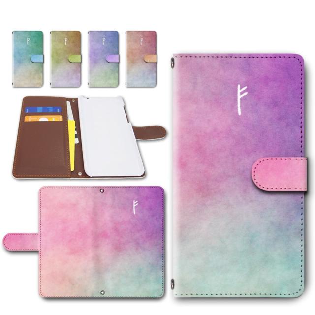 ARROWS 5G F-51A ケース 手帳型 カメラ穴あり ルーン文字 お洒落 グラデーションカラー おしゃれ f51a 手帳型ケース スマホケース アローズ カバー