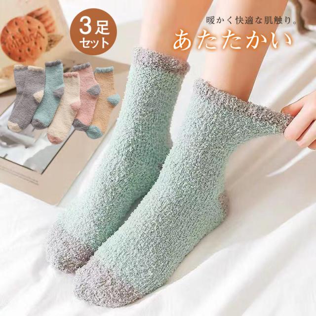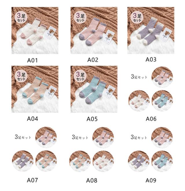 靴下 ソックス 暖かい レディース 防寒靴下 3足セット スプライシング 厚手 極暖 保温 ギフト