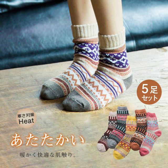 靴下 ソックス 暖かい レディース 防寒靴下 5足セット ポカポカ ソックス 保温 厚手 防寒対策 おしゃれ