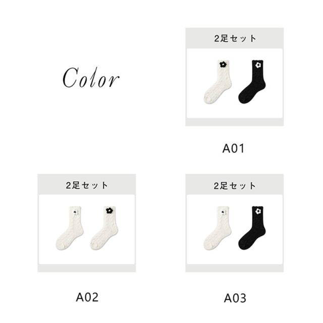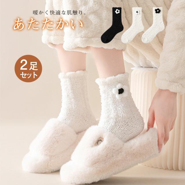 靴下 ソックス 暖かい レディース 防寒靴下 2足セット 防寒 秋冬 厚手 部屋 レッグウエア 可愛い 花柄 おしゃれ
