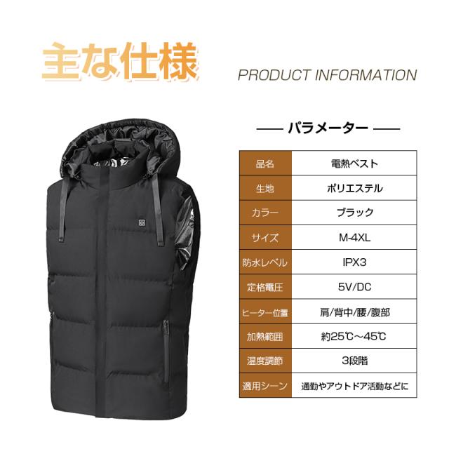 電熱ベスト 電熱ジャケット ヒーター付きベスト ヒーター内蔵 加熱ベスト ホットベスト 発熱ベスト USB加熱 バッテリー給電 USB給電 【PL保険加入済み製品・安心】