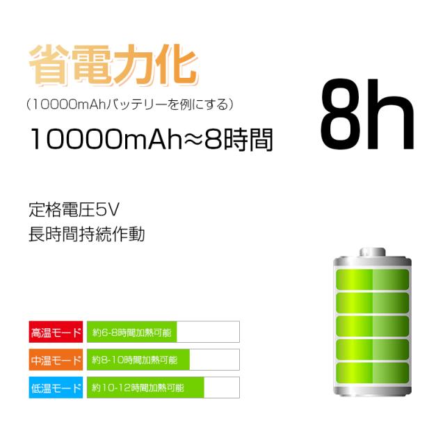 - モバイル充電器が温まると2時間位で止まってしまったけど結構暖かい。外ではまだ使っていないので外の寒い所では止まらないと思うのでこれから寒くなると思うので使っていきたいです