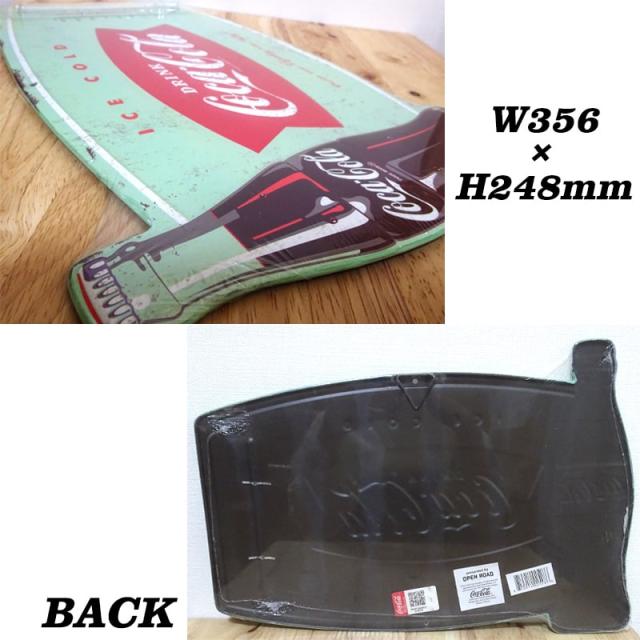 コカ・コーラのロゴとボトルがデザインされたビンテージ感漂うブリキ看板!