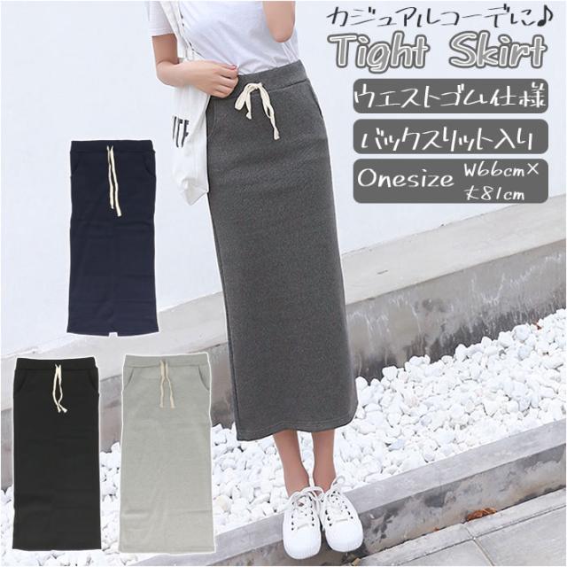 | 商品説明 | ・すっきりとしたシルエットを作り出すタイトスカート♪ ・シンプルな細リブデザイン。 ・伸縮製があり、身体のラインに心地よくフィット。 ・締めつけ感のないウエストゴム仕様。紐でサイズ調節も可能。 ・左右に便利なポケット付き。 ・足捌き快適なバックスリット入り。 ・お手持ちのTシャツやスニーカーと合わせれば、おしゃれなカジュアルコーデの完成♪ |