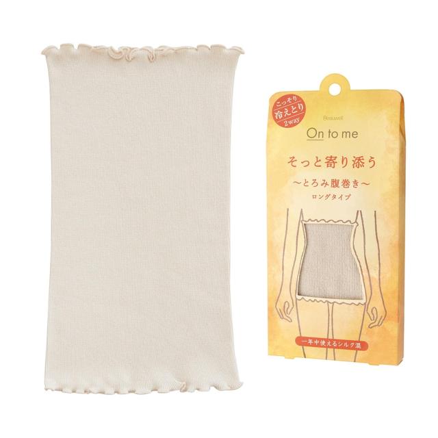 こっそり冷えとり♪「ビューウェル オントミー とろみ腹巻き」が登場。”オン(温)して美しくしなやかに♪冷えがちなカラダを優しく温めるセルフケアシリーズ「オントミー」。オールシーズン快適!夏は吸湿、冬は保温効果のあるシルク混素材を採用。こだわりのとろみ質感とカラダに寄り添う伸縮性で、身体を優しく包んで温める腹巻き。薄手の生地感で、シルエットが気になりにくいのもポイント。アンダーバストから腹下まですっぽり覆えるロングタイプ。締めつけ感のない端フリルデザインで、ストレスフリー。就寝時の保湿マスクとしても使える2wayタイプ。ネックウォーマーとして使ってもOK。ご自宅で手洗いできるから、お手入れがラクチン。