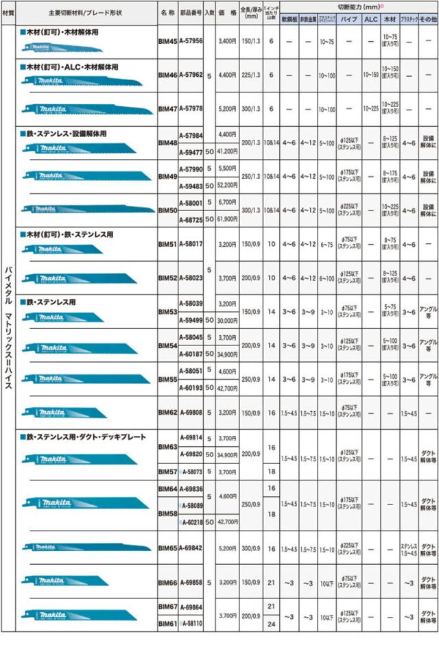 マキタ BIM67 A-69864 レシプロソーブレード(5枚入)全長200mm 山数21(鉄・ステンレス・ダクト・デッキプレート用) セーバソーブレード 替刃