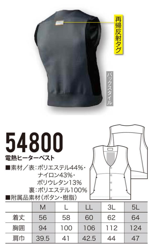 防寒着 クロダルマ インナーベスト(単品) 54800 電熱 ヒーター BODY THERMO