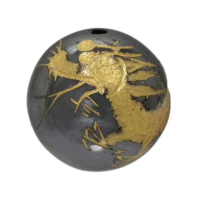 【ヘマタイト手彫り 磁気入り 青龍 12mm 】 天然石 ビーズ(丸玉) 2玉セット