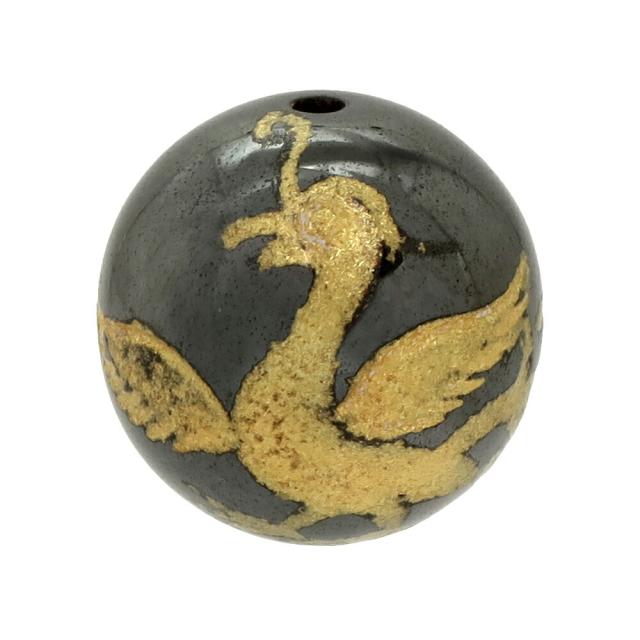 磁気入りヘマタイトに四神獣の『朱雀』を彫り込んだ、12mm玉の2玉セットです。