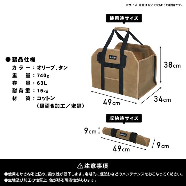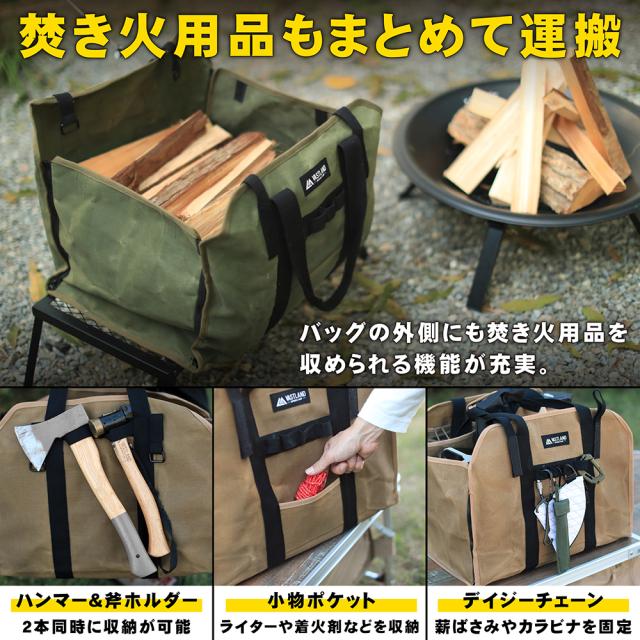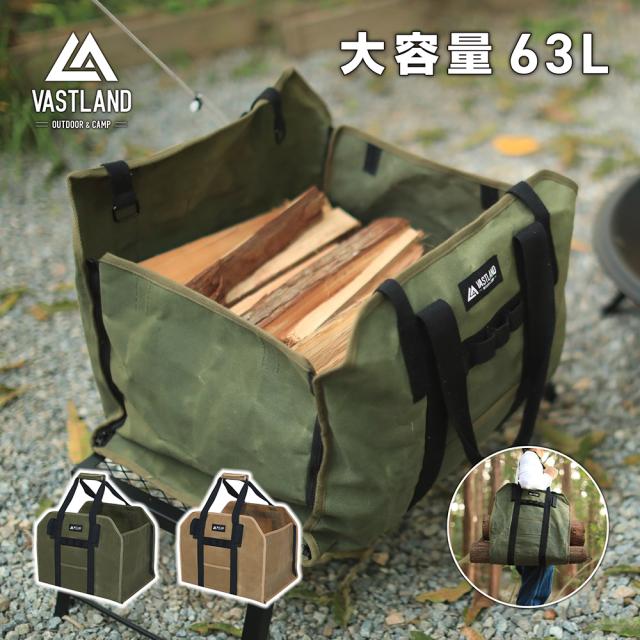 VASTLAND 薪バッグ 容量63L 焚き火用品 キャンプ バッグ 蝋引き帆布生地 防水・撥水加工 薪置き デイジーチェーン付き