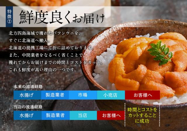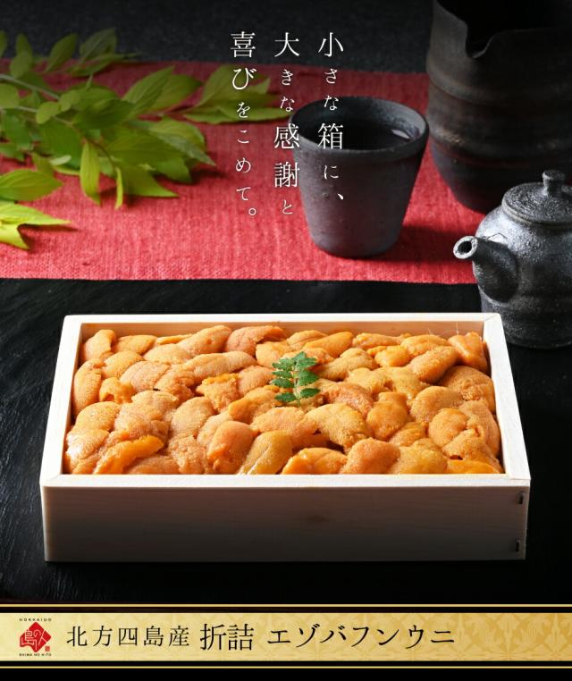 北方四島産「折詰エゾバフンウニ」150g【送料無料】北海道 お取り寄せ ギフト 折ウニ 食べ物 高級 折り詰め