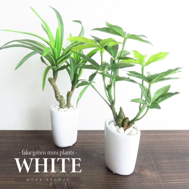 観葉植物 造花 ホワイト スリムポット オーバル 楕円形 パキラ ユッカ アーティフィシャル フェイクグリーン 陶器製鉢 おしゃれ インテリア