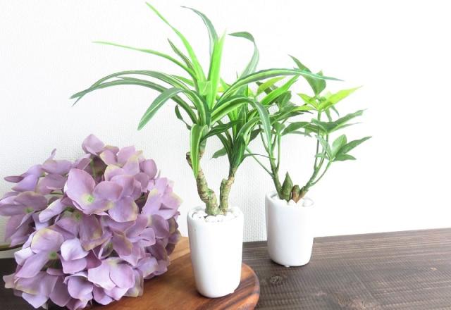 忙しい人を癒すフェイクグリーンはシーンに合わせて使いやすく、置き場所を選ばず手入れ不要で手間いらずなのがウレシイ。