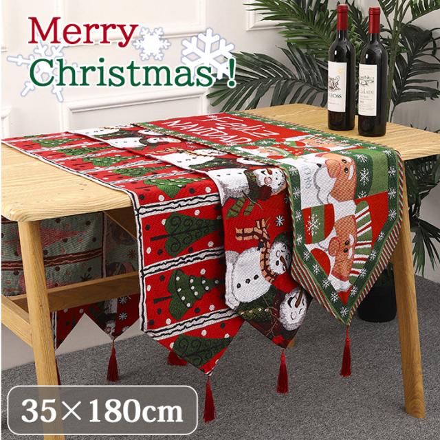 新作 クリスマス テーブルランナー 35×180cm テーブルカバー テーブルクロス マット サンタ トナカイ クリスマスツリー デコレーション 飾り おしゃれ 北欧 雑貨 インテリア 家庭用 パーティー 汚れ防止