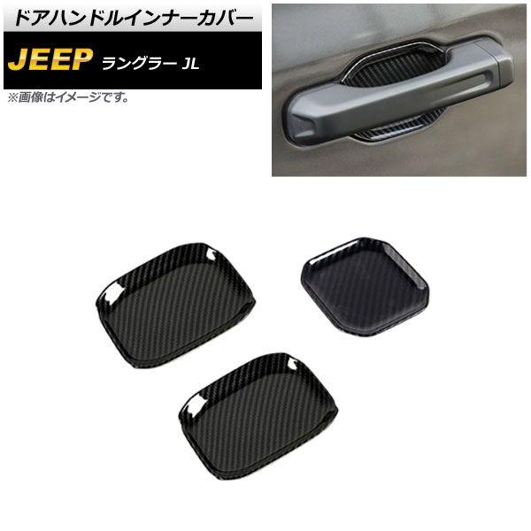 ドアハンドルインナーカバー ジープ ラングラー JL 2018年10月〜 ブラックカーボン ABS製 2ドア用 入数:1セット(3個) AP-XT1763-BKC