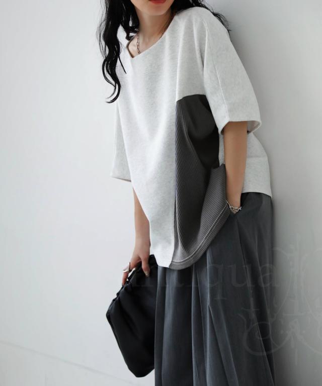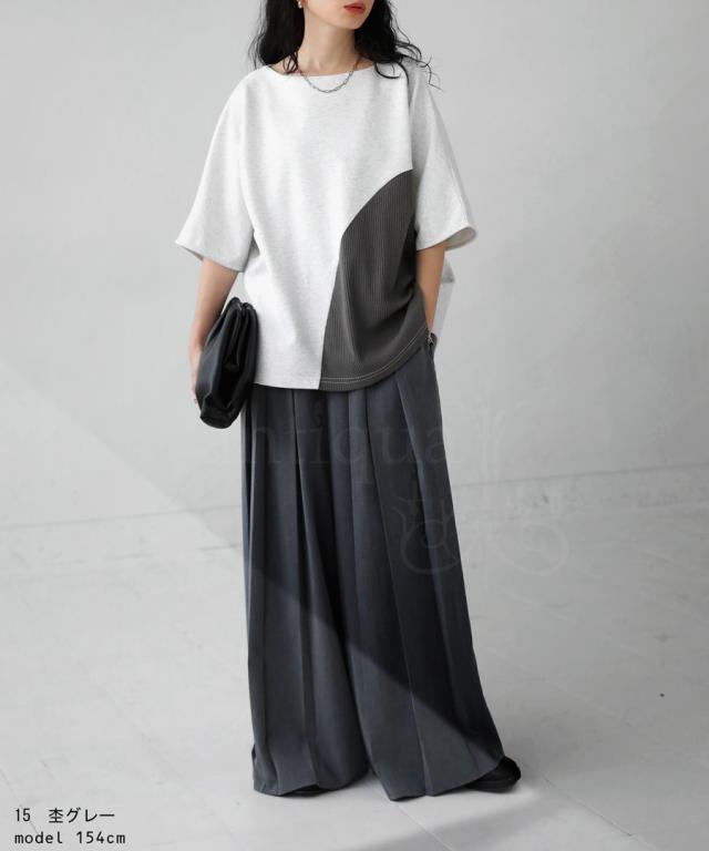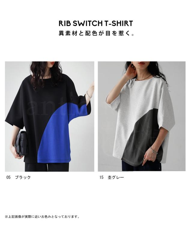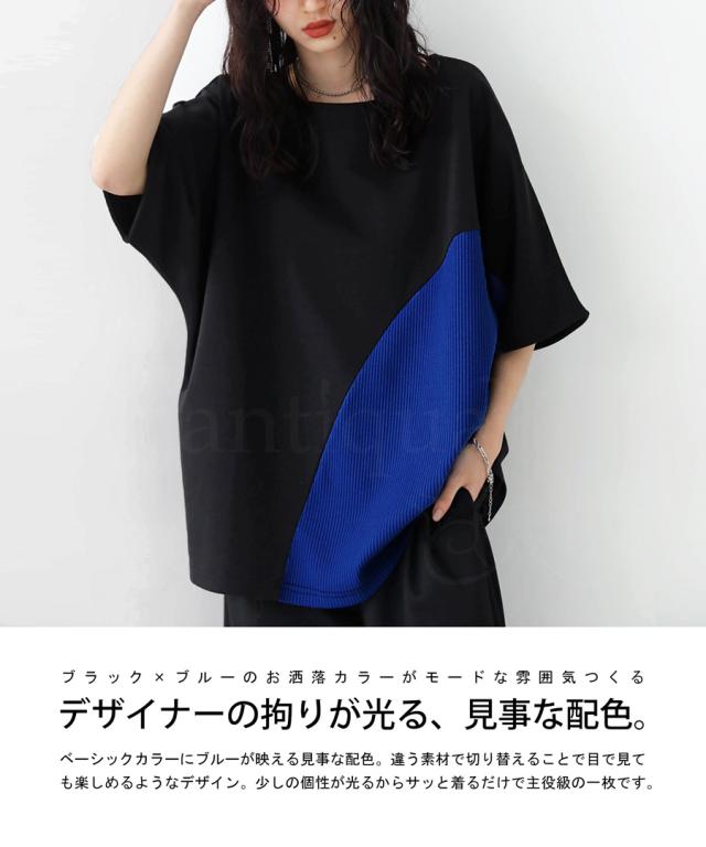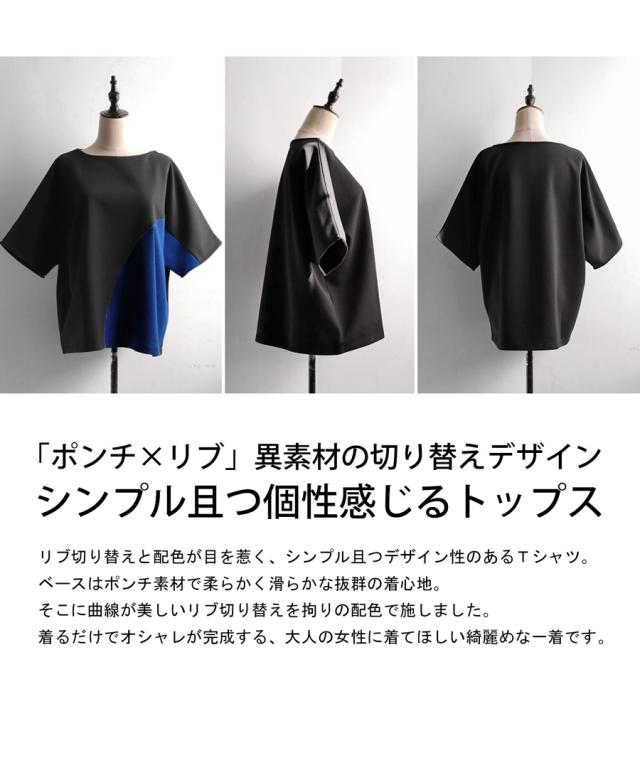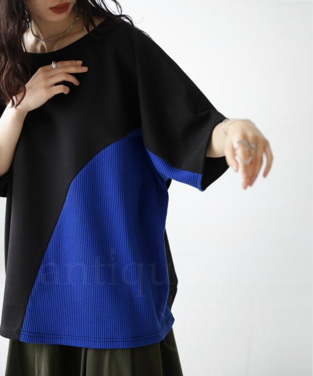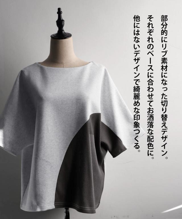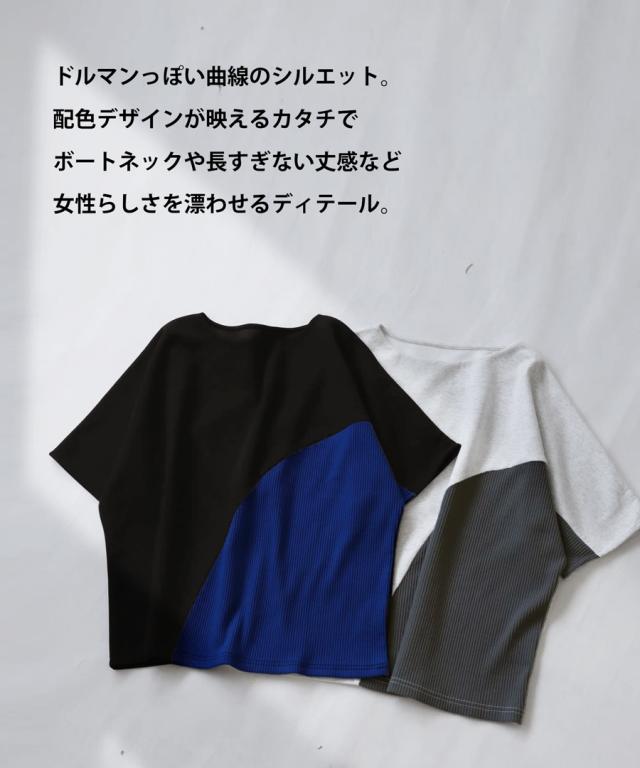 【検索ワード】リブ切替え ポンチTシャツ Tシャツ レディース トップス カットソー 半袖 五分袖 無地 配色 異素材 切り替え リブ ポンチ素材 ドルマン ドルマントップス ゆったり ボートネック 綿混 厚手 ドッキング 見返し襟 オリジナル 曲線 変形 モード オーバーサイズ 大きめ 大きいサイズ antiqua アンティカ 大人 おしゃれ 10代 20代 30代 40代 50代 60代 春 夏 お洒落 カジュアル かわいい かっこいい あんてぃか