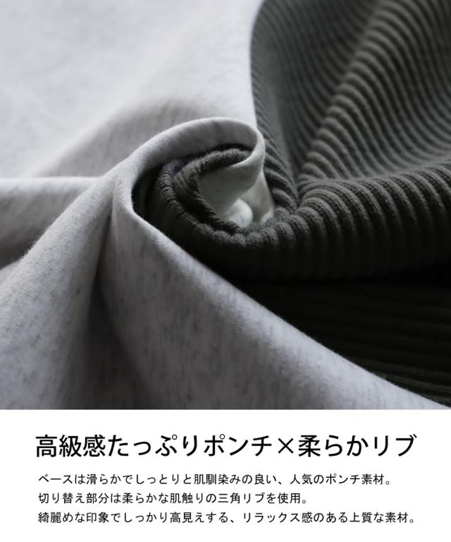 「ポンチ×リブ」異素材の切り替えデザイン。