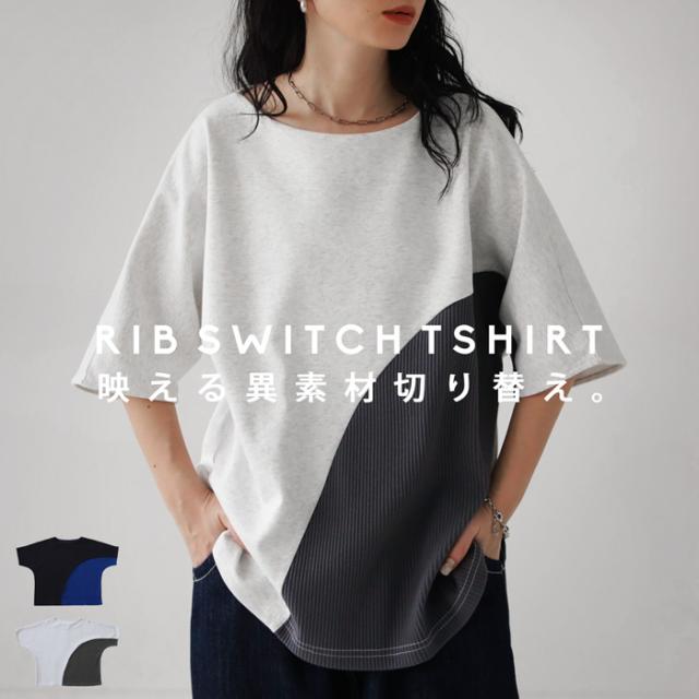 リブ切替え ポンチTシャツ Tシャツ レディース トップス・再入荷 (100)メール便可