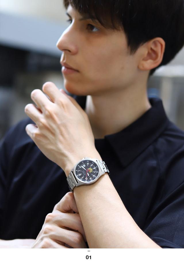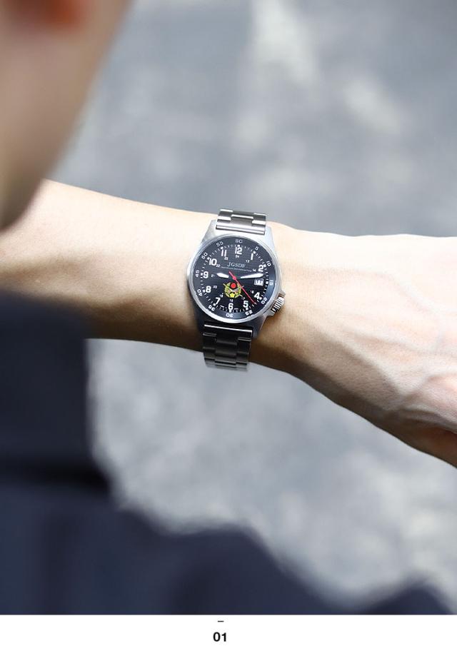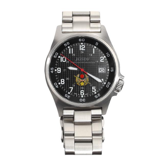 文字盤の、12時位置に陸上自衛隊を意味する「JGSDF」の正式ロゴ、9時位置に陸上自衛隊の公式エンブレム(縁なしバージョンの桜刀)を刻印した誇り高きデザイン。
