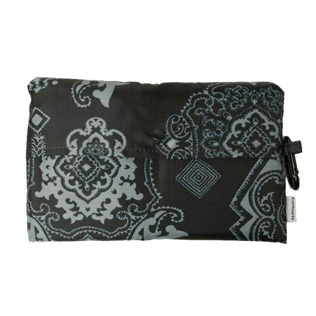 カラビナ付きのスクエアポーチが付属しコンパクトに折り畳みが可能。