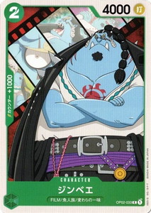 OP02-033 | C | CHARACTER ジンベエ コスト2 属性 打 パワー4000 カウンター1000 色緑 特徴FILM/魚人族/麦わらの一味 テキスト - 入手情報 頂上決戦【OP-02】
