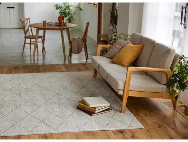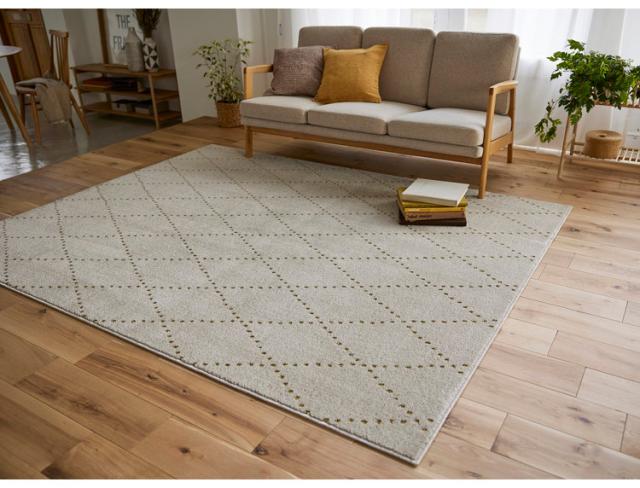 日本製 ラグ 185×240cm 滑り止め ポント モロッカン模様 アクセント カラーライン タフトラグ ベージュ グリーン ブルーグレー 国産 スミノエ Suminoe 北欧 モダン(代引不可)【送料無料】